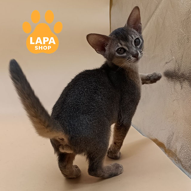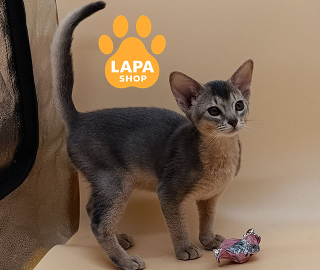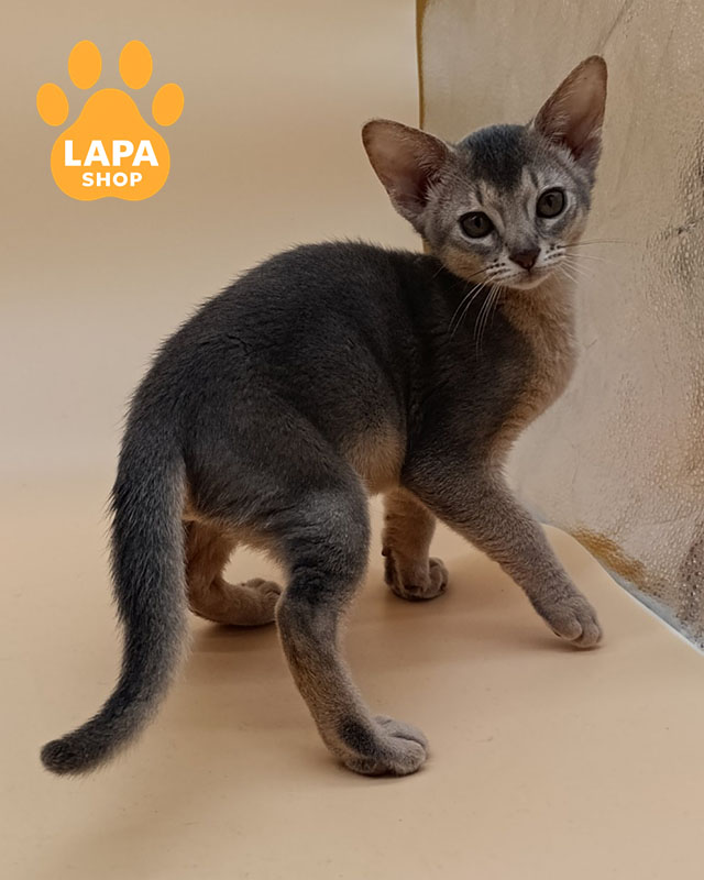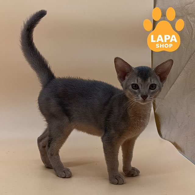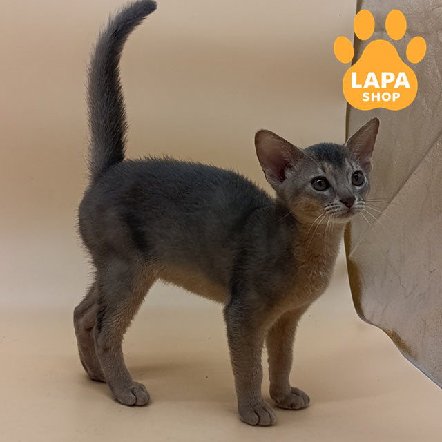 Цей витончений котик абіссінської породи з благородним блакитним забарвленням, яке надає його образу особливої легкості та шарму.