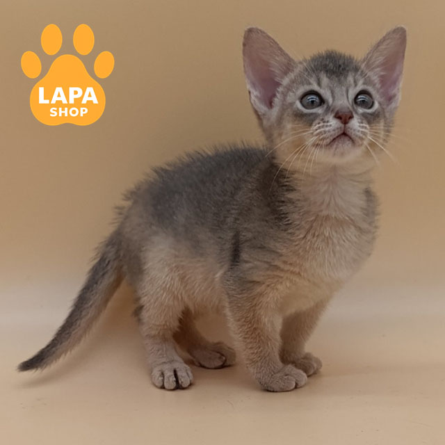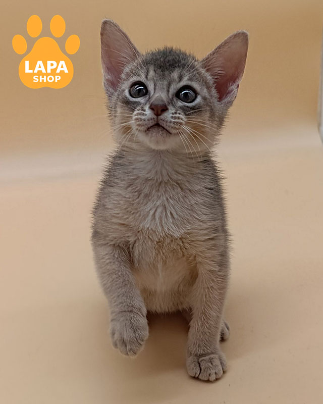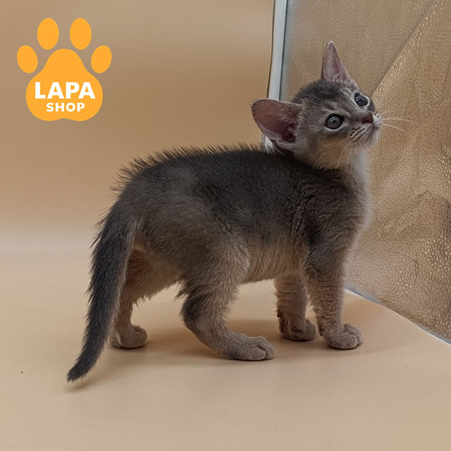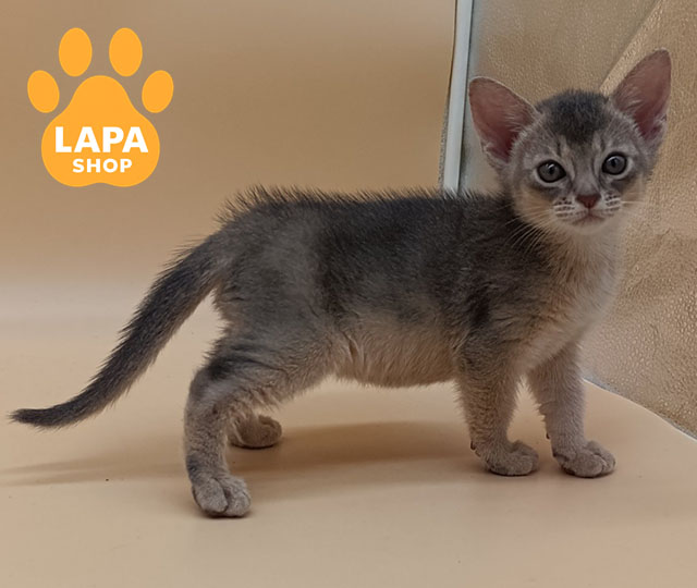 Цей витончений котик абіссінської породи з благородним блакитним забарвленням, яке надає його образу особливої легкості та шарму.
