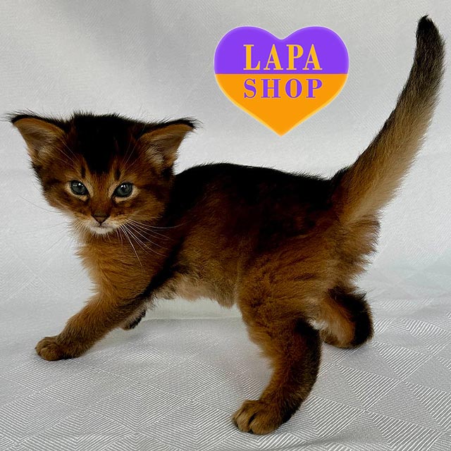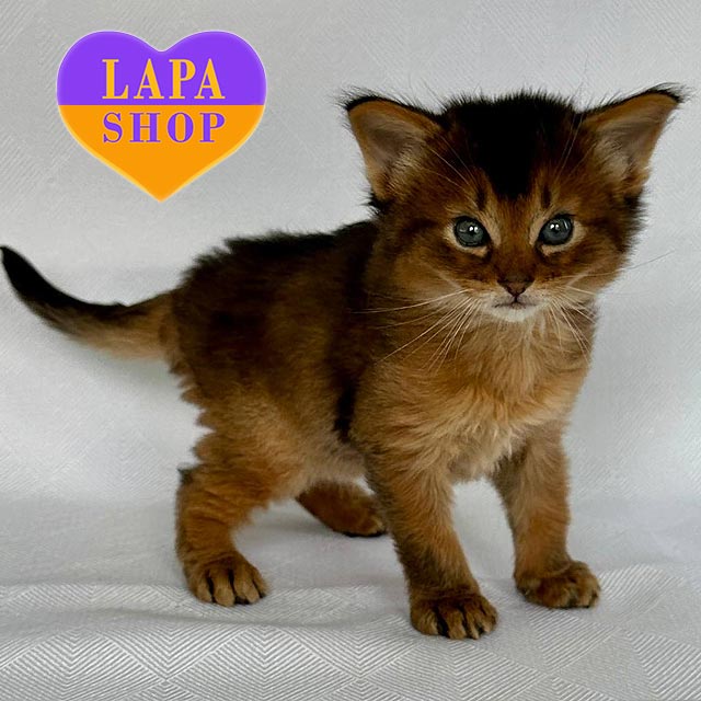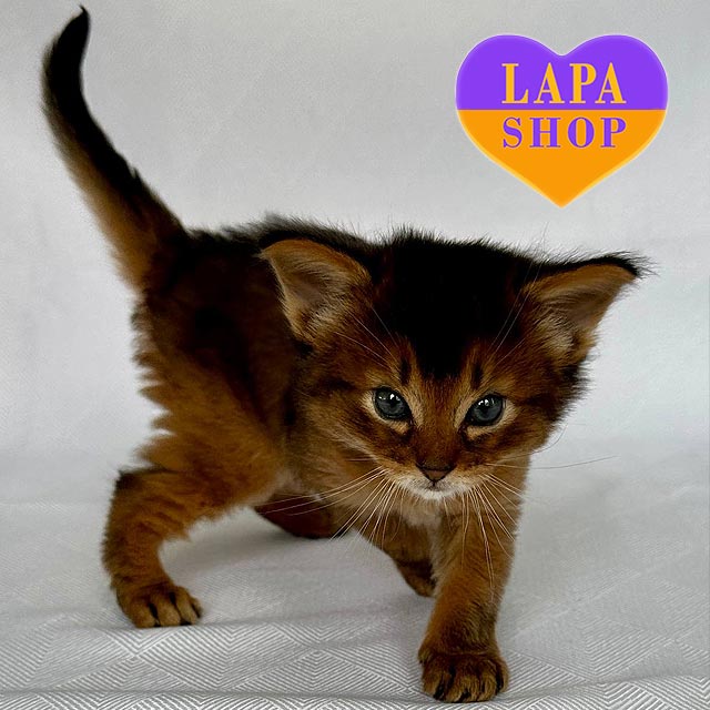 Urban — хлопчик сомалійської породи з яскравим диким забарвленням, що надає йому вигляду маленького хижака. Його шовковиста шерсть, пухнастий хвіст і живий блиск в очах — справжня естетика руху та грації.