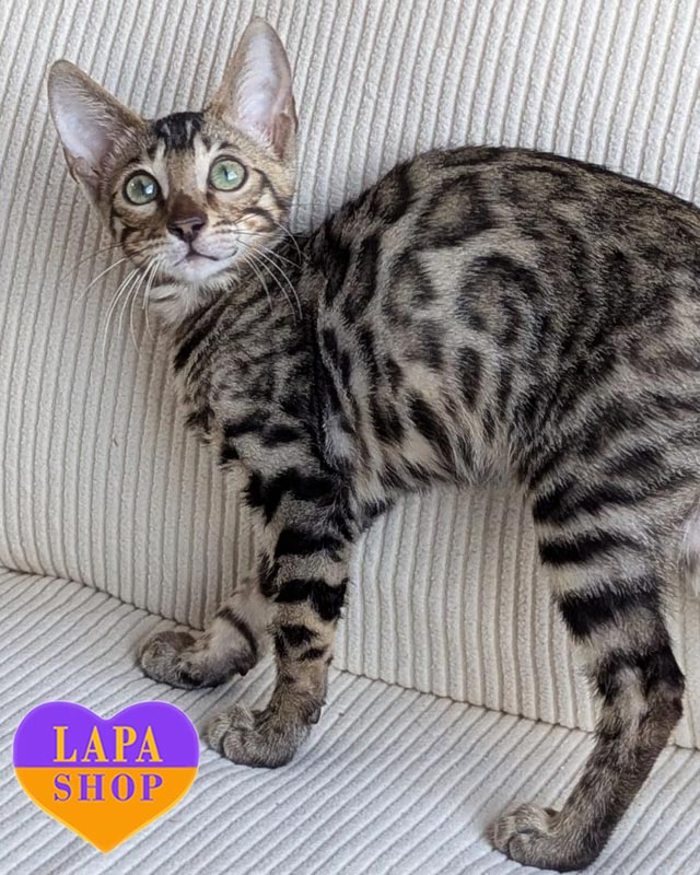 Amira — витончена дівчинка бенгальської породи з ефектним забарвленням «розетка на золоті», яке нагадує леопардовий принт.