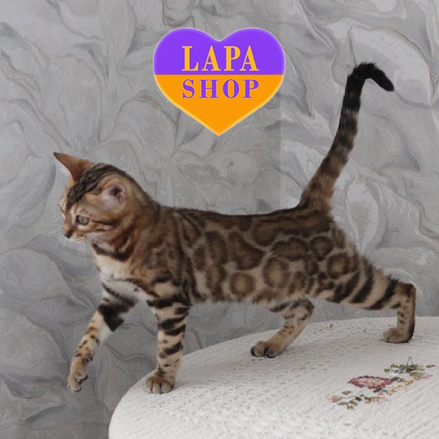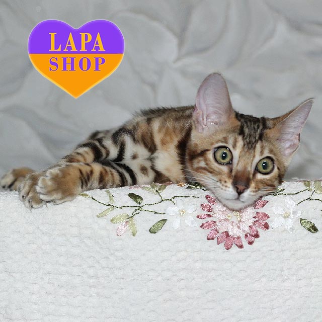 Barbie — чарівна бенгальська кішечка з розкішним забарвленням. Її оксамитова шерсть із виразними розетками та милими очима робить її справжнім витвором природи.