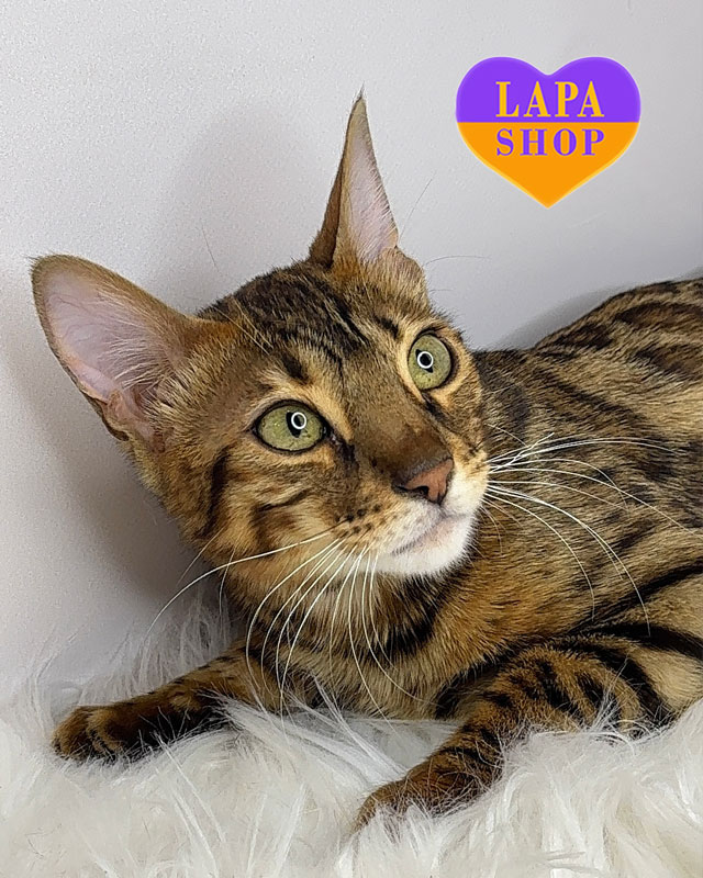 Красуня ЛоЛо – це справжня пантера у мініатюрі з розкішним золотим хутром у контрастних розетках.