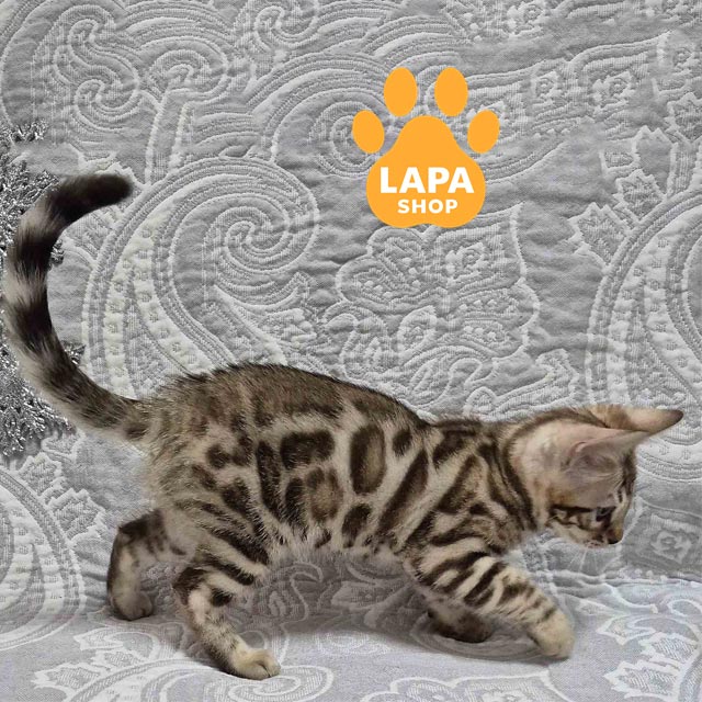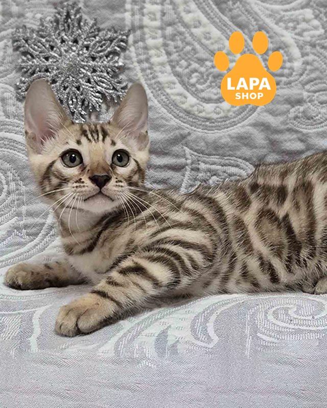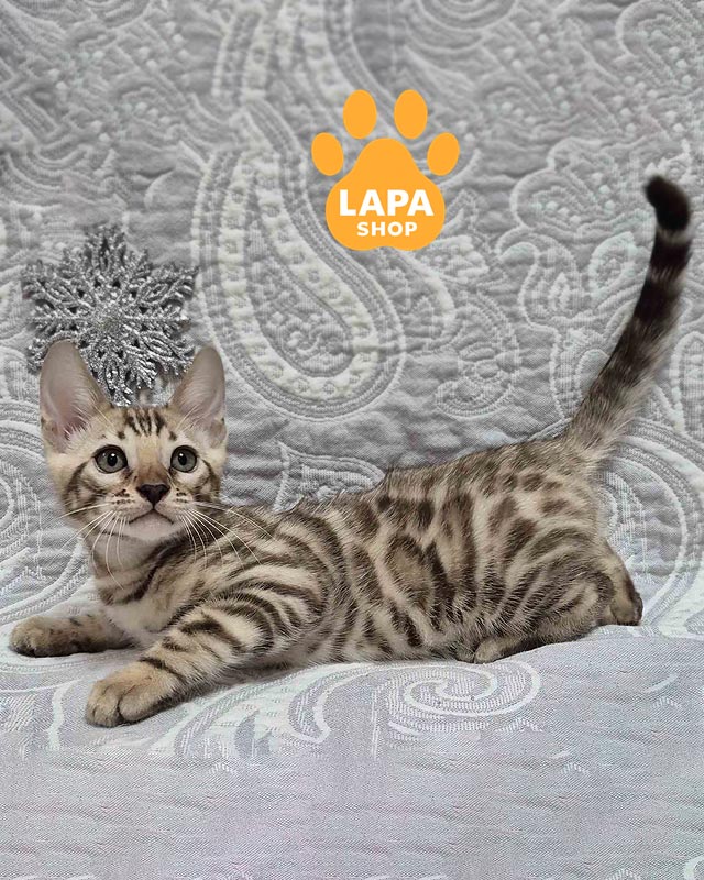 Форест — кошеня бенгальської породи з плямистим сіл мінк табі забарвленням (ns 24 32), де ніжний теплий фон поєднується з виразними темними плямами і легким мінковим відтінком.