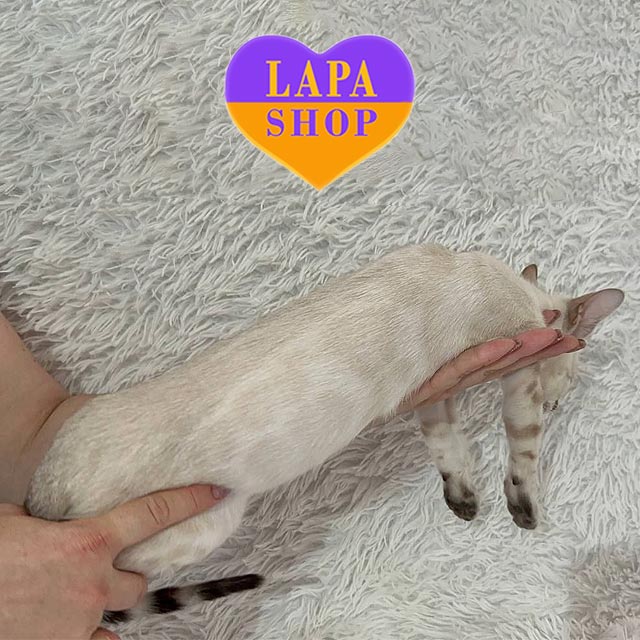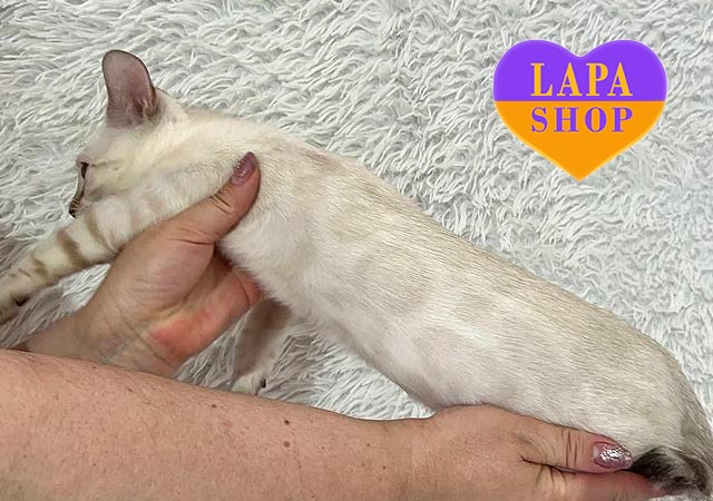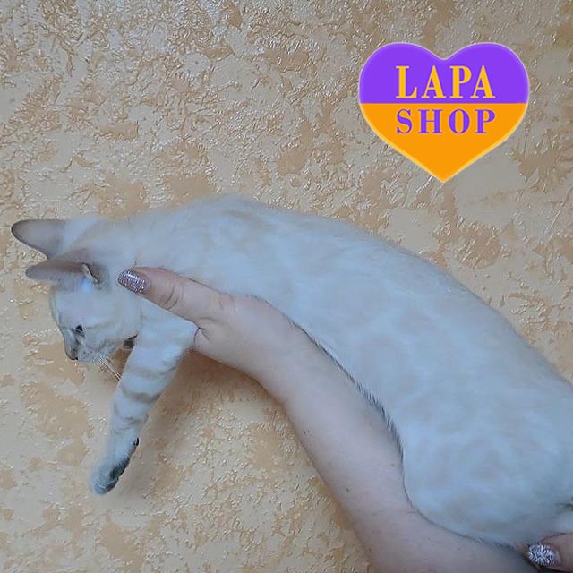 Його оксамитова шубка світлого відтінку прикрашена чіткими плямами, а глибокі блакитні очі зачаровують з першого погляду.