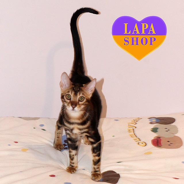 Simba – розкішний бенгальський котик із золотим (n 24) забарвленням, що надають йому вигляду справжнього маленького леопарда.