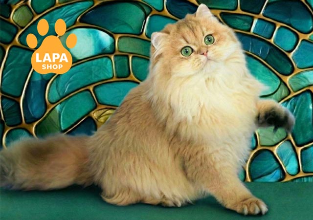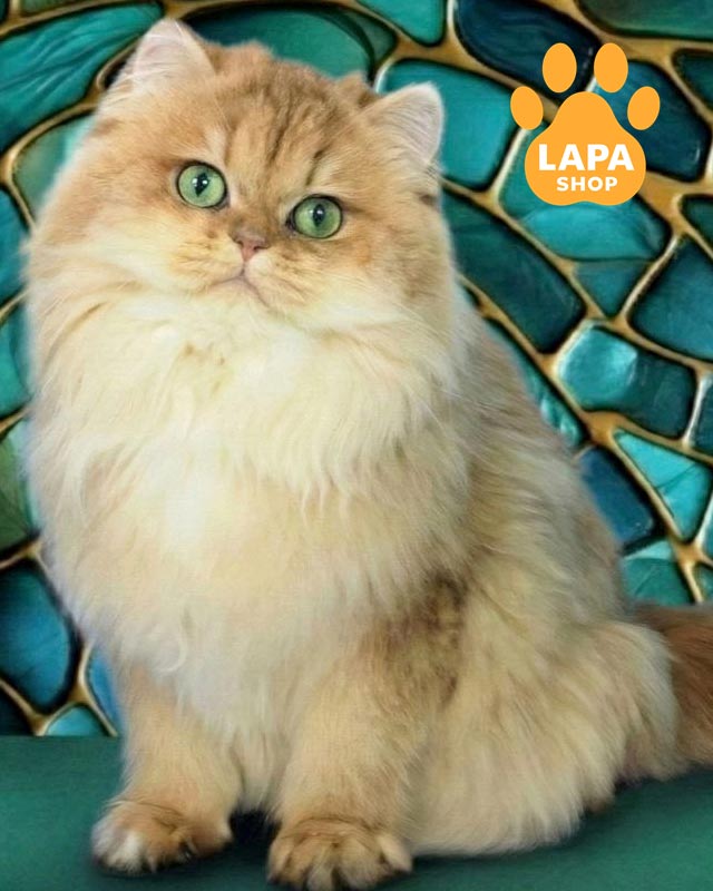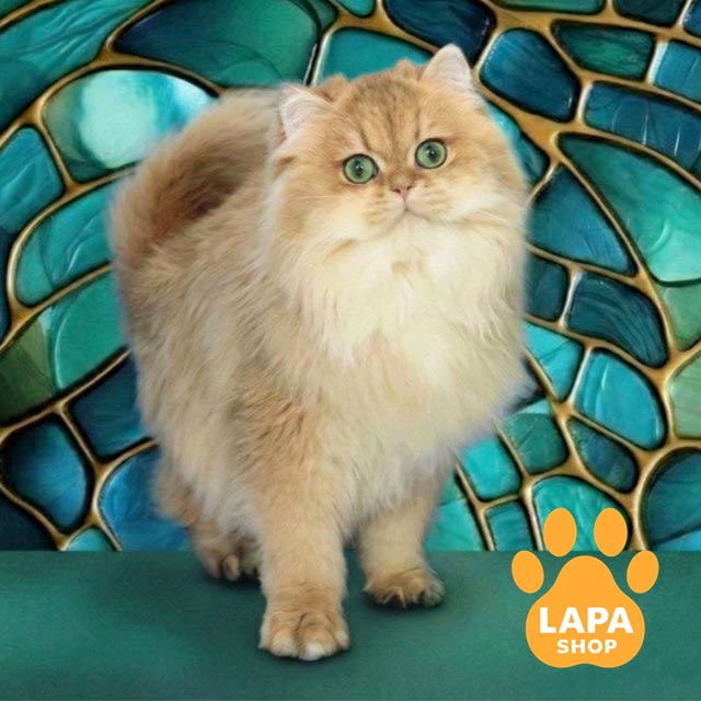 Її густе шовковисте хутро має золоте забарвлення, яке ніжно переливається на світлі.