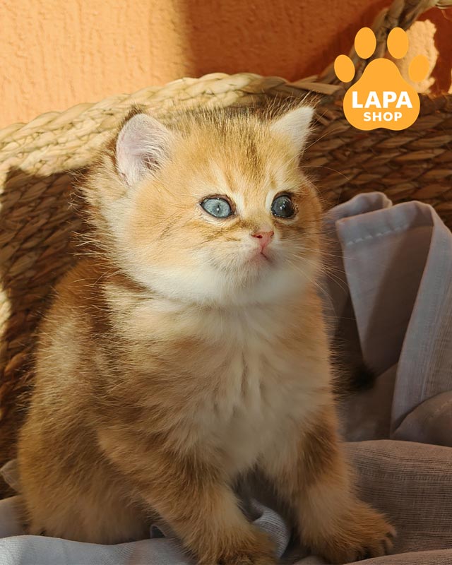 Британський короткошерстий хлопчик Apollo — справжній скарб із розкішною шерстю золотого забарвленя (ny 11), що м’яко переливається на світлі.