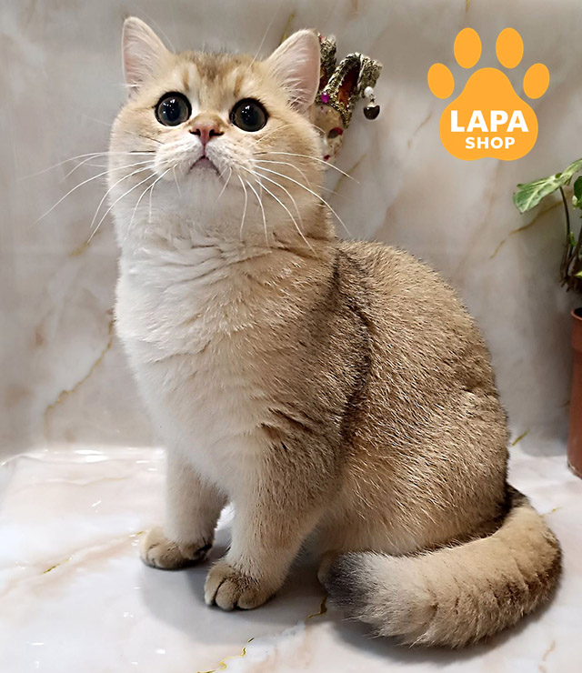 Queen — чарівний хлопчик британської породи з золотим затушованим забарвленням (ny 11). Його плюшева шерсть мерехтить теплим золотом із легкою тінню по спинці, а круглі очі надають йому особливого шарму.