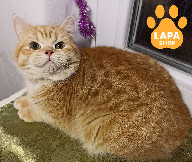Красень британської породи з розкішним червоним золотим плямистим таббі (dy 24). Його забарвлення і густе хутро надають йому особливої елегантності.