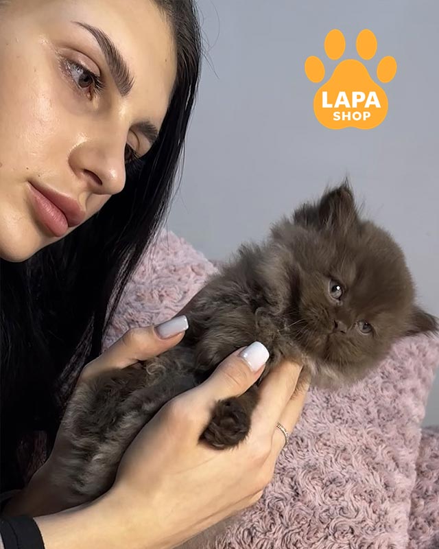 Zakhar — чарівний представник британської довгошерстої породи з насиченим шоколадним забарвленням, який виглядає особливо виразно на довгій густій шерсті.