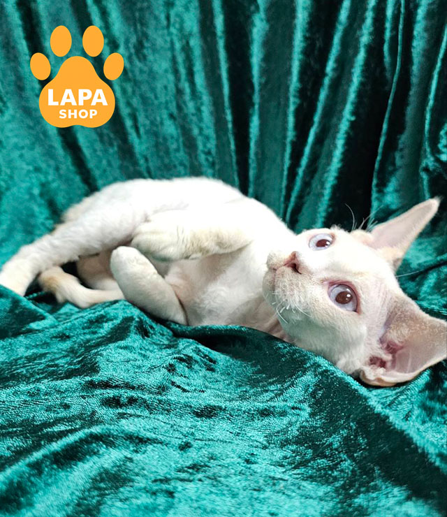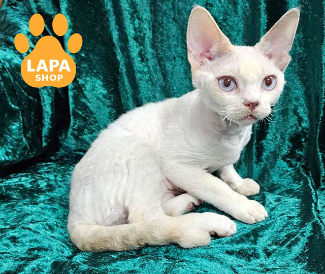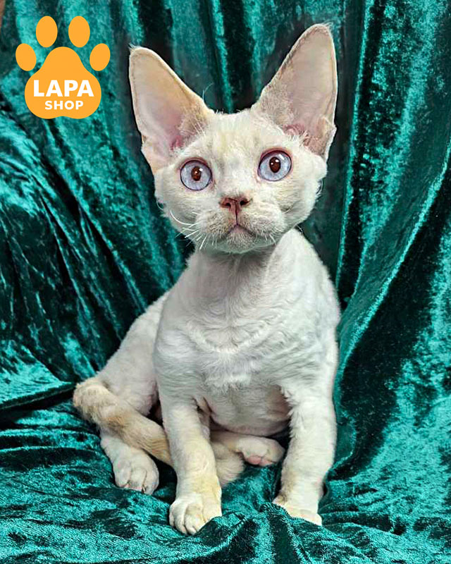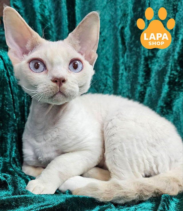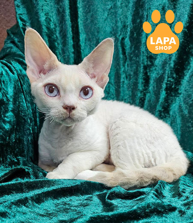 Elsa — елегантна кішечка породи девон-рекс із ліловим колор пойнт ван забарвленням (c 33 01). Її ніжна шерсть і виразні блакитні очі нагадують північний океан, надаючи їй особливого шарму.