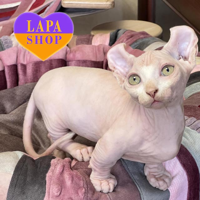 Casper – надзвичайно ефектний хлопчик породи двельф з білим забарвленням (w 62) та виразними жовтими очима, що ніби світяться теплом. Його зовнішність доповнює граційне тіло, безшерстість та вигнуті вушка, що створюють образ справжнього казкового створіння.