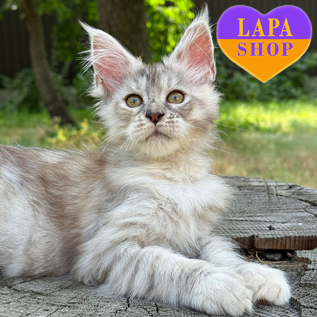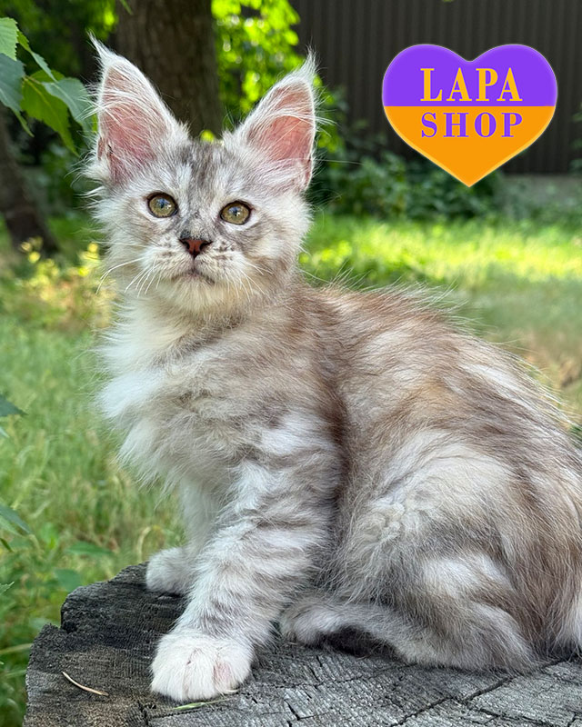 Ця ефектна красуня з вишуканим забарвленням — черепаховим сріблястим плямистим (fs 24). Її шубка переливається контрастними сріблястими відтінками на фоні насичених темних плям, що надає їй особливого шарму. Витончені риси мордочки та виразний погляд роблять її справжньою красунею.