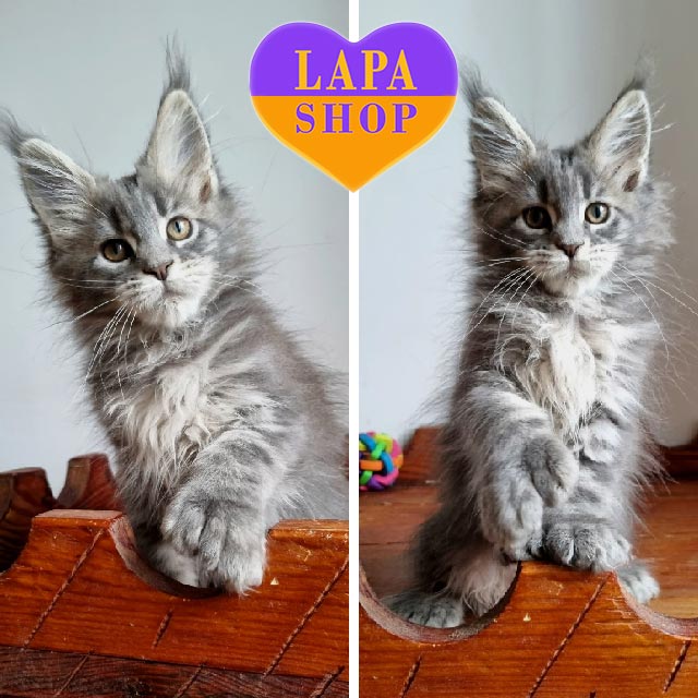 Betti – неймовірна кішечка мейн-кун з блакитним мармуровим забарвленням і унікальною особливістю – полідактилією, що робить її унікальною.