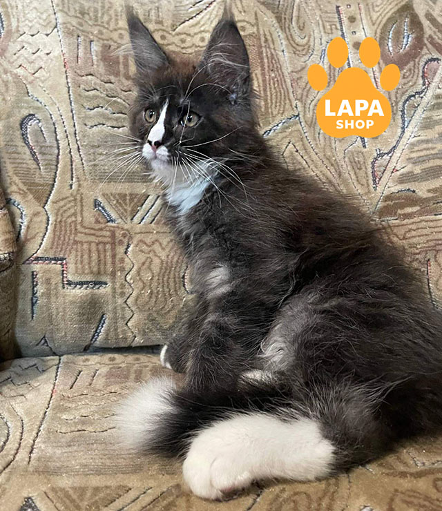 Dennis — красивий красень породи мейн-кун з ніжним забарвленням n04. Його великий корпус, гармонійні пропорції та пухнаста шерсть підкреслюють породну елегантність. Котик виглядає елегантно та привабливо, привертаючи увагу своєю зовнішністю.