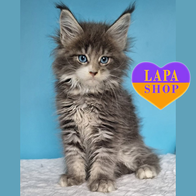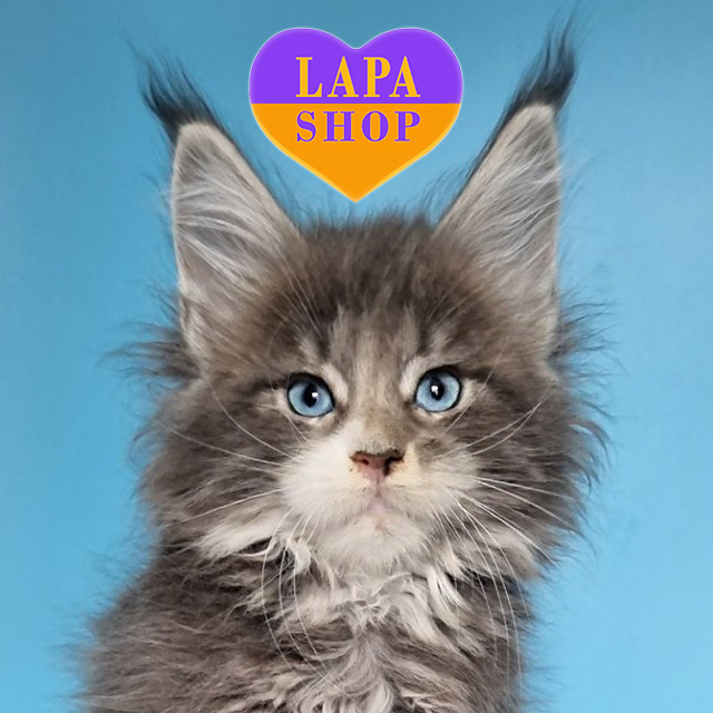 Gerda — елегантна мейн-кун кішечка з блакитним мармуровим забарвленням та білим, яка поєднує в собі витонченість і розкіш. Її блакитні очі й прекрасна шерсть створюють неповторний образ.