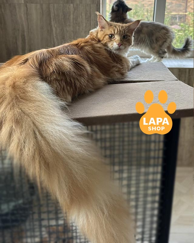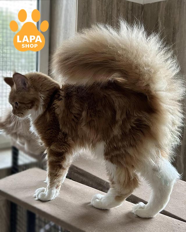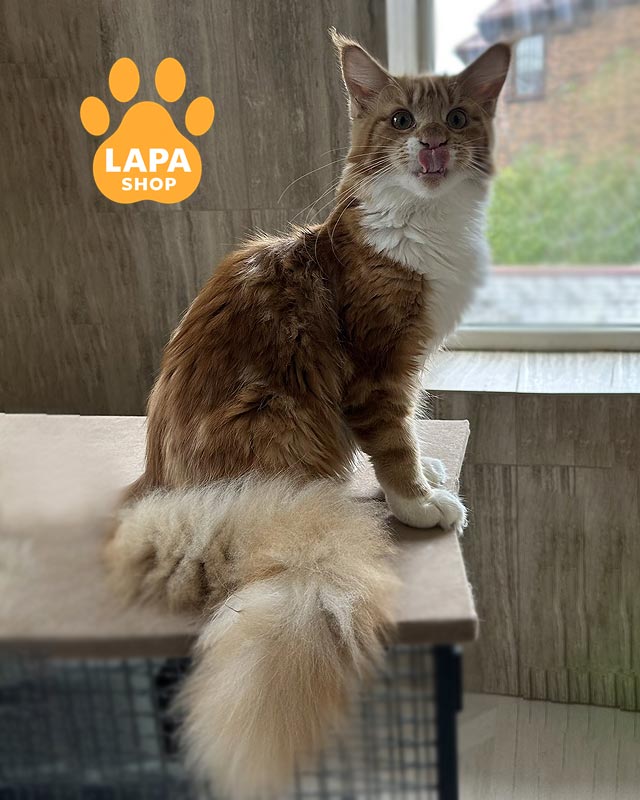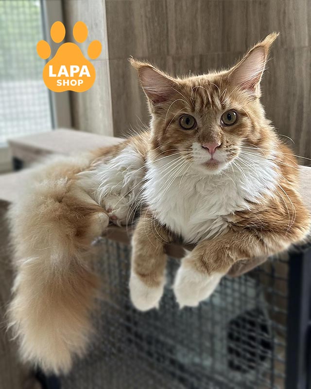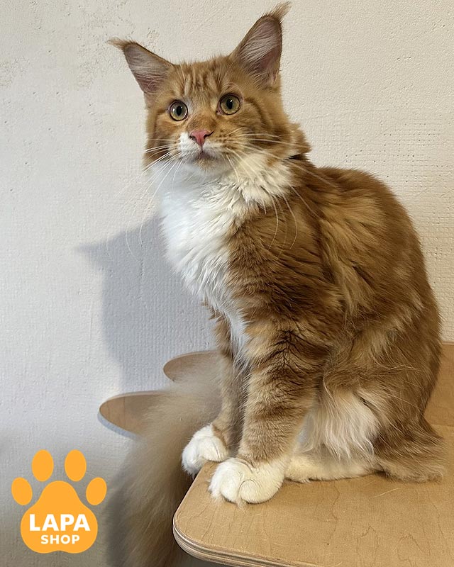 Gusya – харизматичний мейн-кун, який зачаровує своїм яскравим червоним мармуровим біколорним забарвленням (d 03 22).