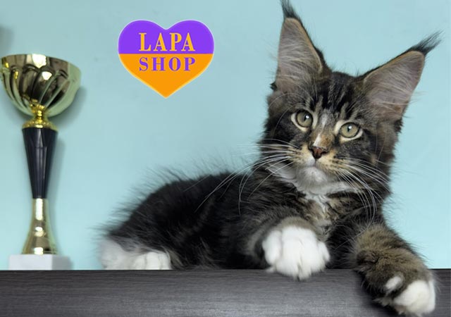 Кошеня породи мейн-кун в пошуку люблячих батьків.