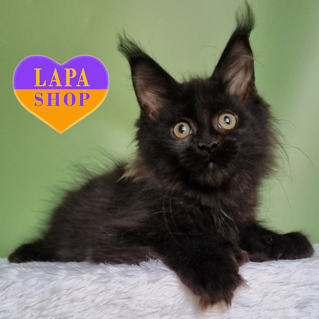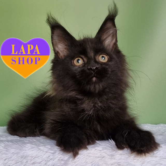 Kamala — витончена мейн-кун полідакт із розкішним чорним забарвленням та гармонійними рисами. Її головна особливість — додаткові пальчики на лапках, що додають їй ще більше шарму й індивідуальності. Густа шовковиста шерсть та виразний погляд роблять її справжньою прикрасою будь-якого дому.