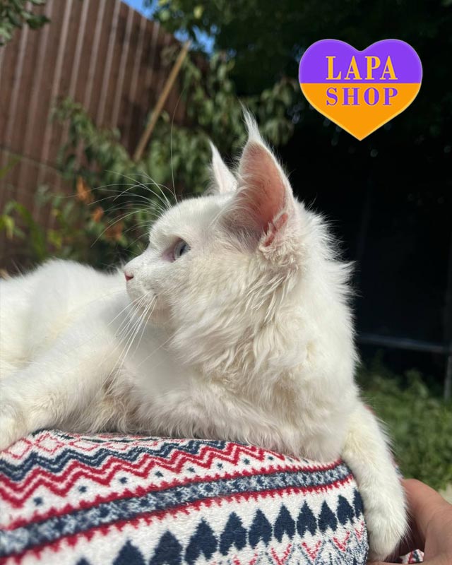 Її сніжна шерсть виглядає особливо витончено, підкреслюючи аристократичну зовнішність та граційність рухів. У кішечки ідеальний слух