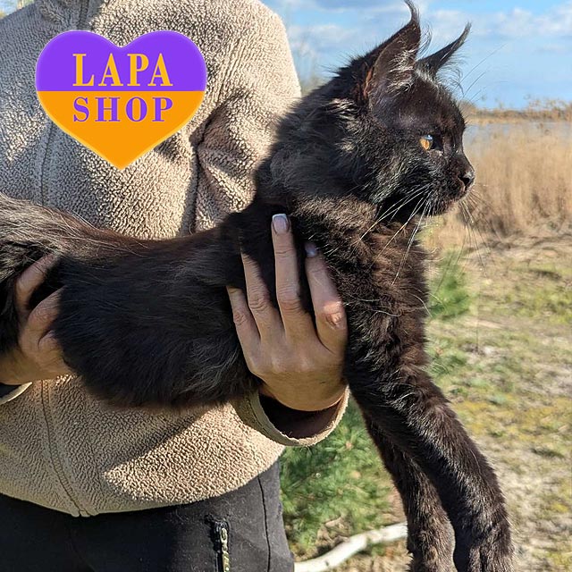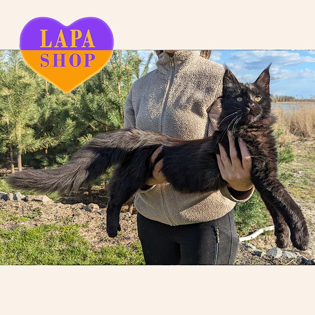 Кошеня породи мейн-кун в пошуку люблячих батьків.
