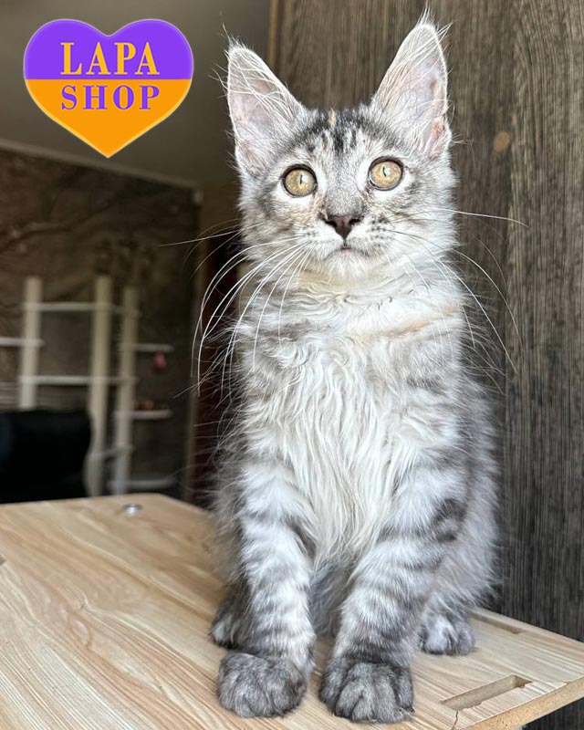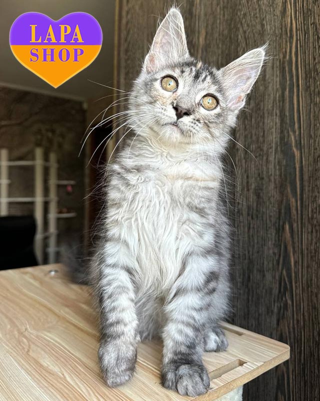 Кошеня породи мейн-кун в пошуку люблячих батьків.