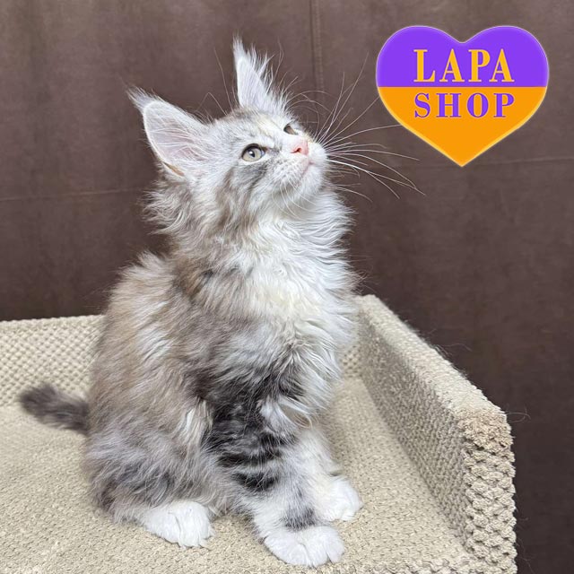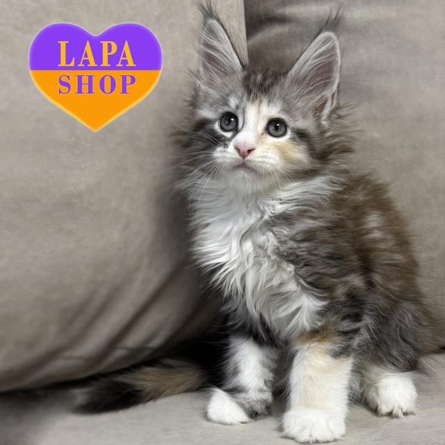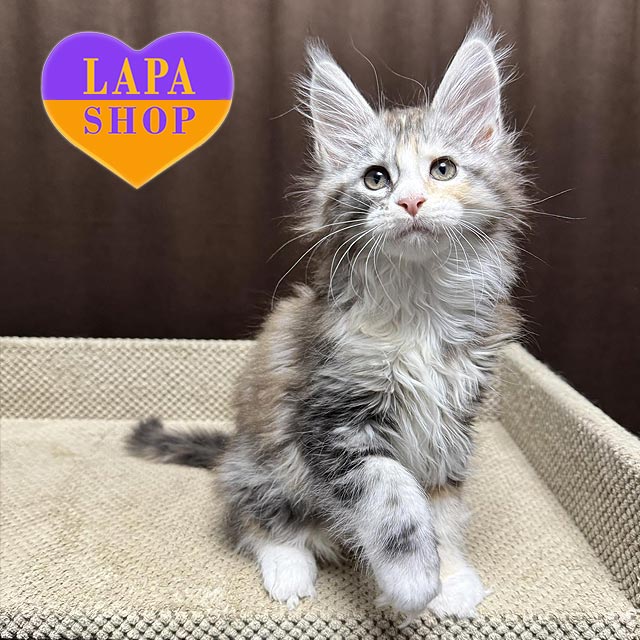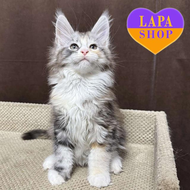 Fran – чарівна кішечка мейн-кун з черепаховим сріблястим забарвленням і білими відтінками, яка зачаровує своєю милою зовнішністю.
