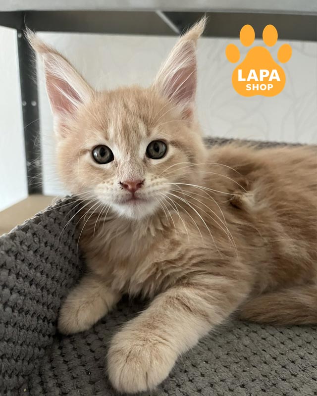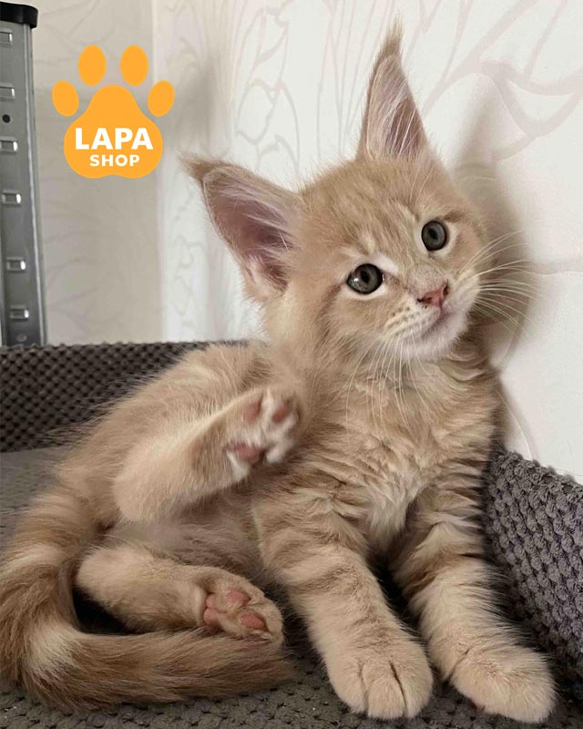 Goldi — ніжна дівчинка мейн-кун з кремовим сяйвом шерсті.