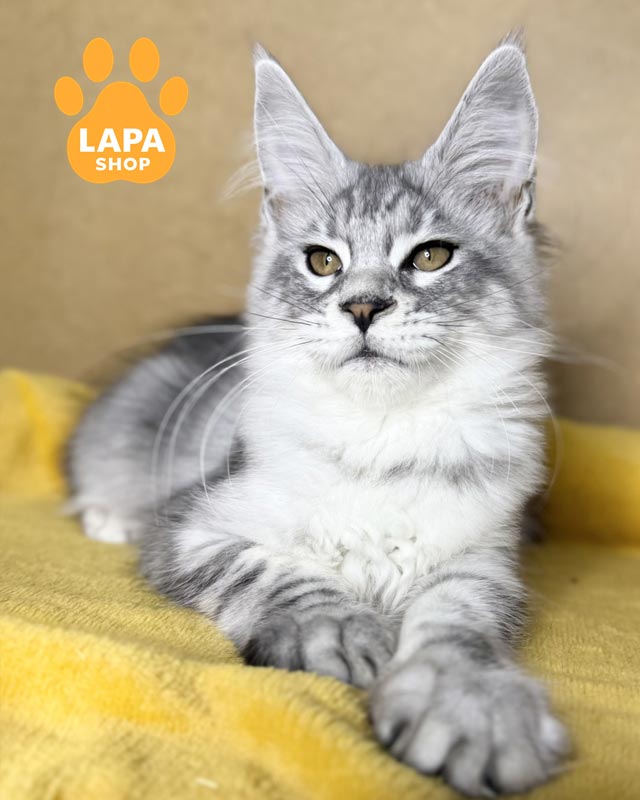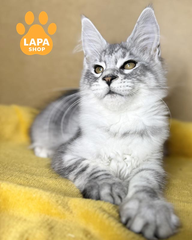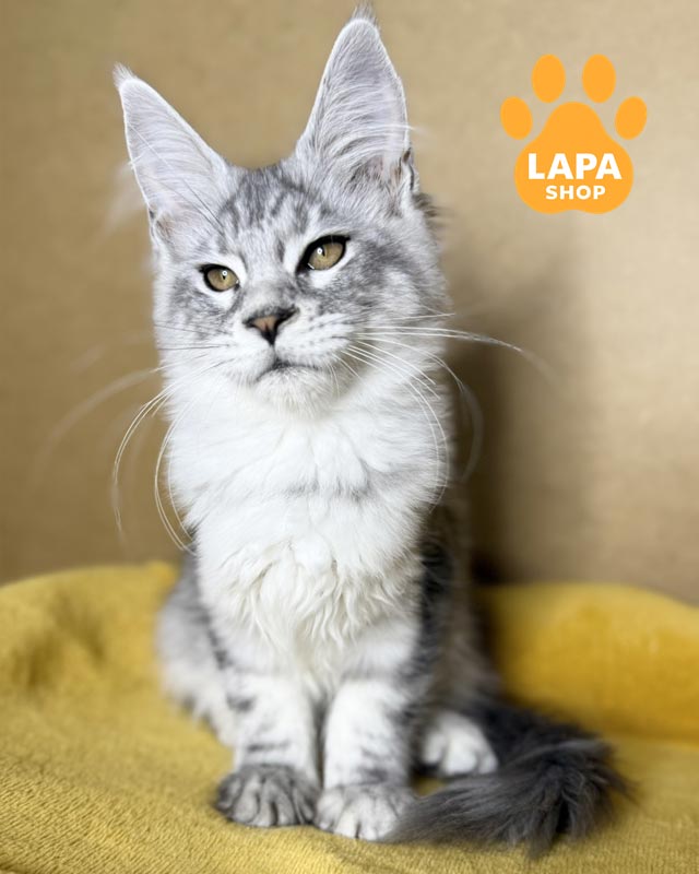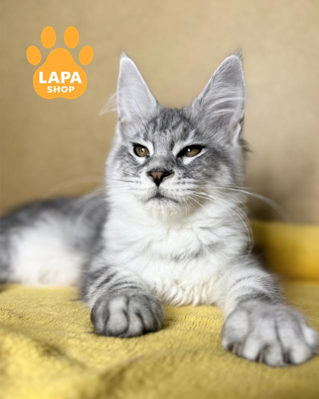 Мейн-кун Milanija у блакитно-сріблястому мармуровому забарвленні (as 22) вражає своєю красою та величною поставою.