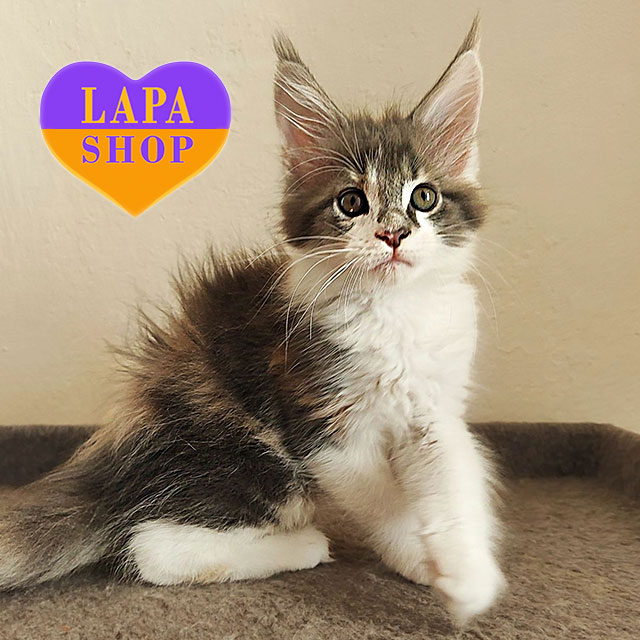 Кошеня породи мейн-кун в пошуку люблячих батьків.
