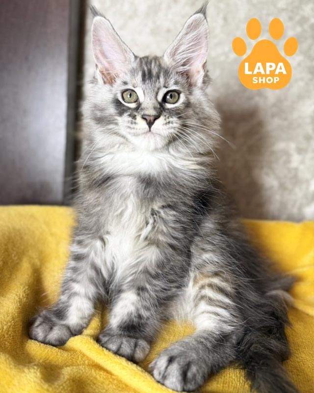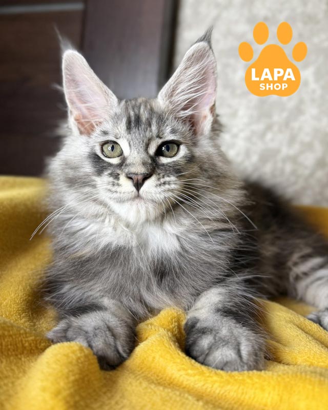 Мейн-кун дівчинка Zlata у чарівному черепаховому сріблястому забарвленні (fs) зачаровує своєю елегантністю.