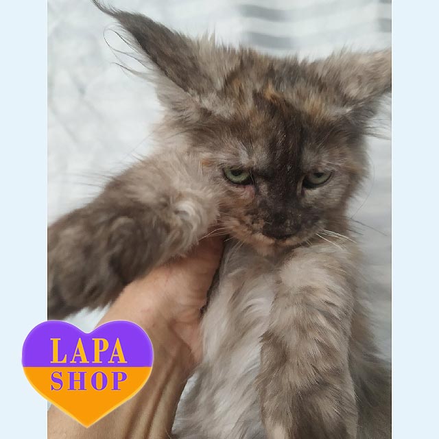 Кошеня породи мейн-кун в пошуку люблячих батьків.