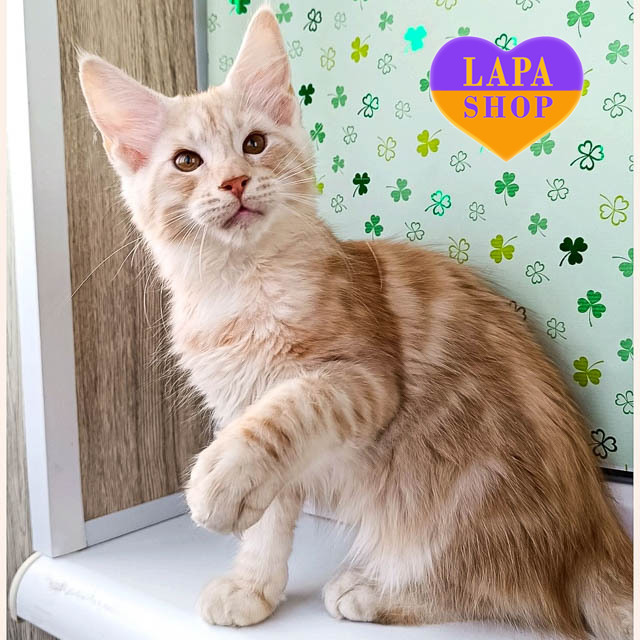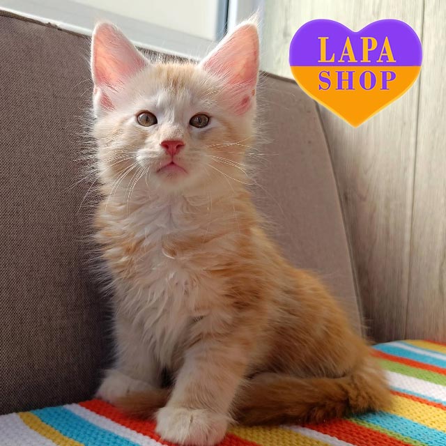 Кошеня породи мейн-кун в пошуку люблячих батьків.