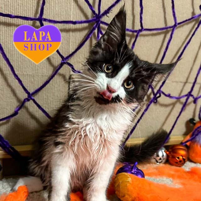 Кошеня породи мейн-кун в пошуку люблячих батьків.