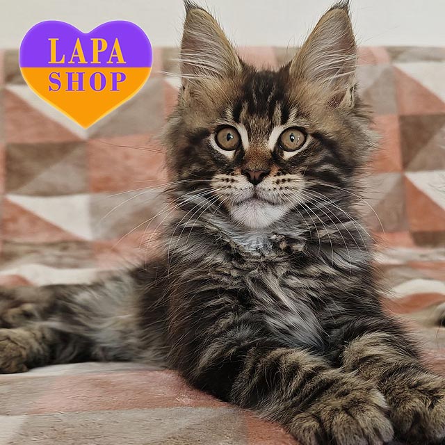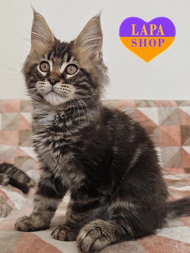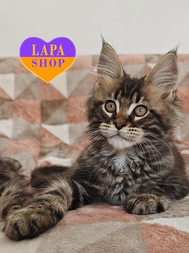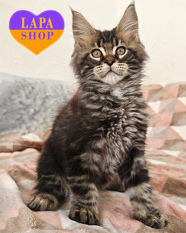 Кошеня породи мейн-кун в пошуку люблячих батьків.