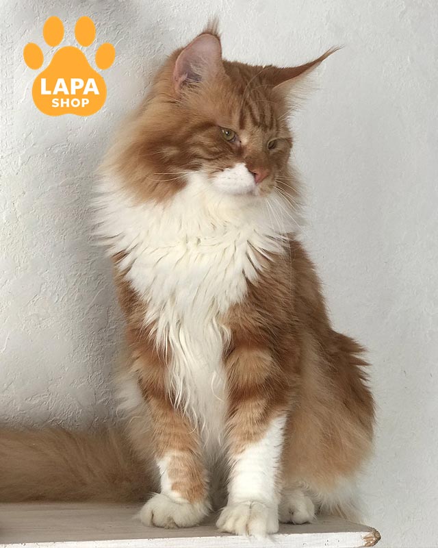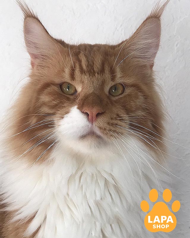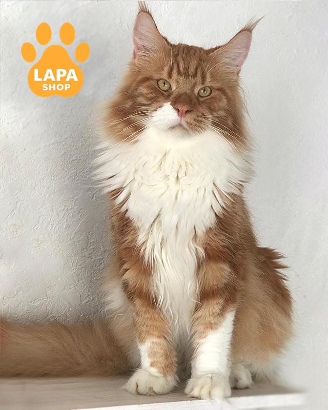 Ramesses — красунчик мейн-кун, який вражає своєю яскравою зовнішністю: насичене червоне мармурове забарвлення в поєднанні з білосніжними відмітинами надає йому справжньої аристократичності.