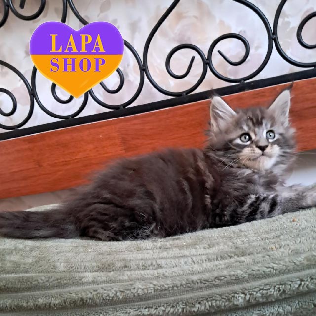 Кошеня породи мейн-кун в пошуку люблячих батьків.