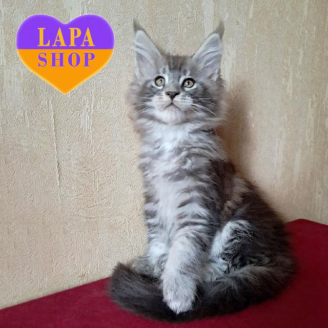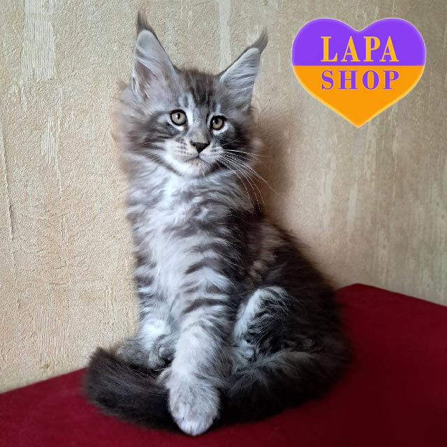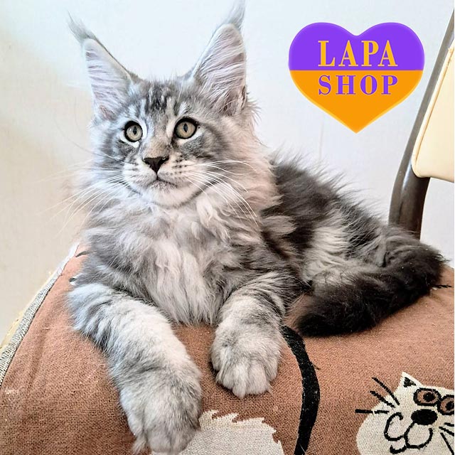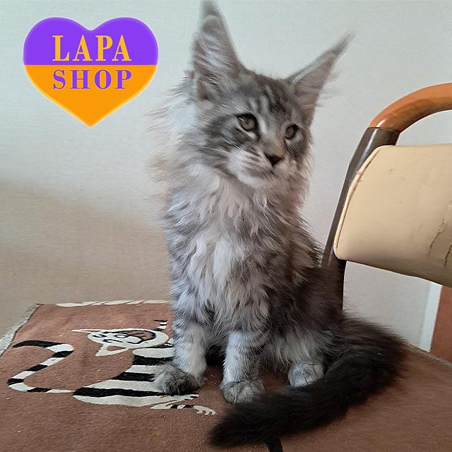 Урмас – чарівний хлопчик породи мейн-кун із вишуканим чорним мармуровим сріблястим забарвленням.