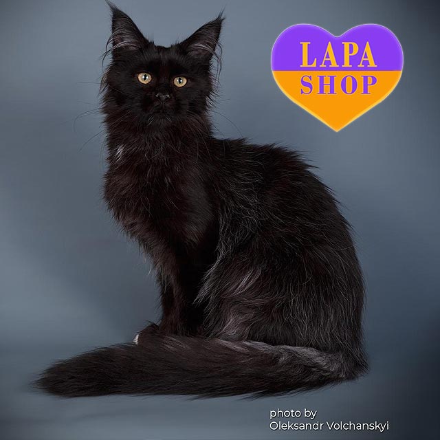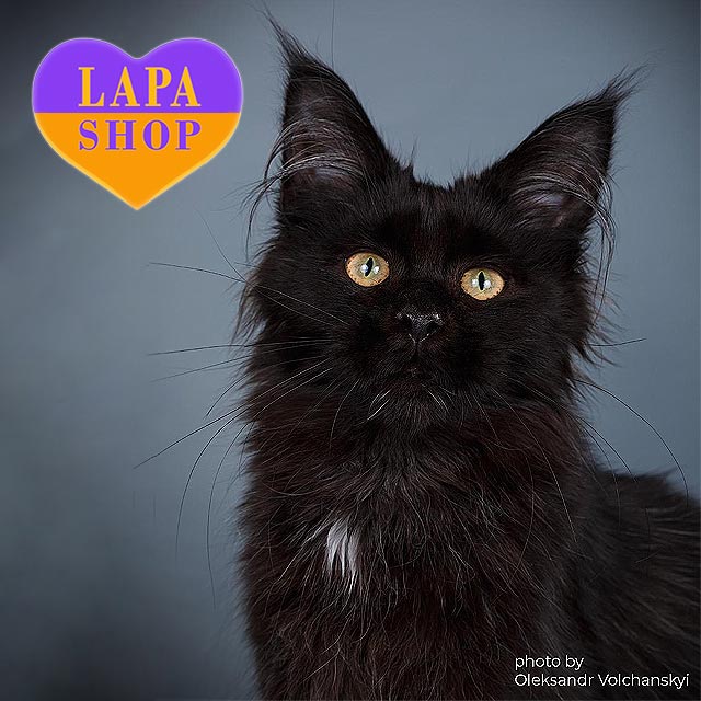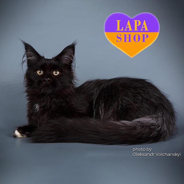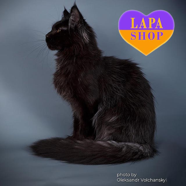 Duncan — величний хлопчик породи мейн-кун із глибоким чорним забарвленням та витонченими білими акцентами. Його пухнаста шубка та спокійний погляд випромінюють справжню шляхетність.