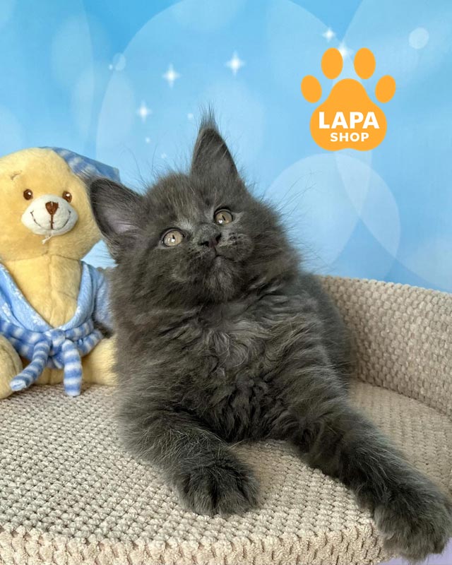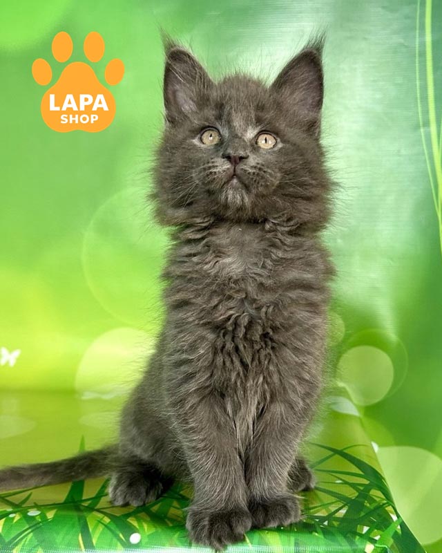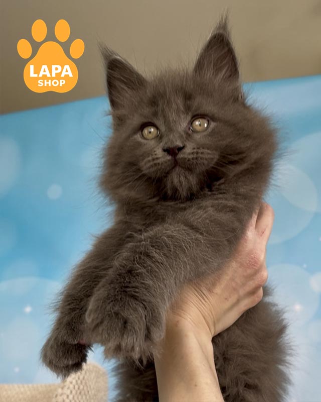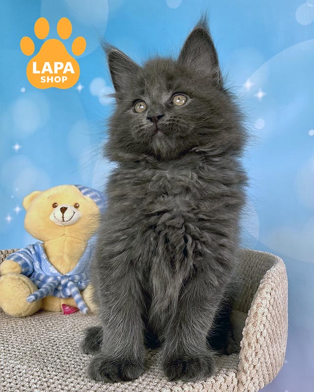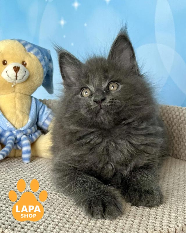 Patrick — кошеня породи мейн-кун, яка має вишукане блакитне димне забарвлення (as), де ніжна світла основа шерсті поєднується з глибшим блакитним напиленням на кінчиках.