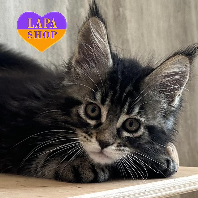 Кошеня породи мейн-кун в пошуку люблячих батьків.