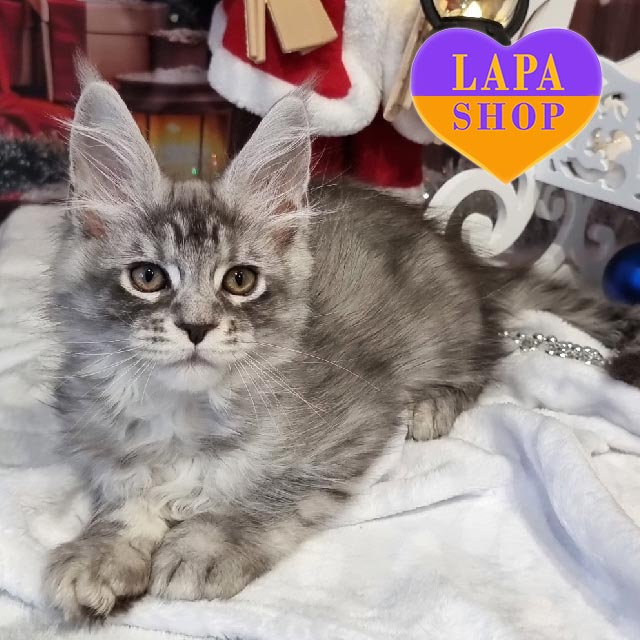 Котик Wersavii — це елегантний представник породи мейн-кун. Його забарвлення — чорне сріблясте плямисте (ns 24), яке робить його вигляд надзвичайно вишуканим.