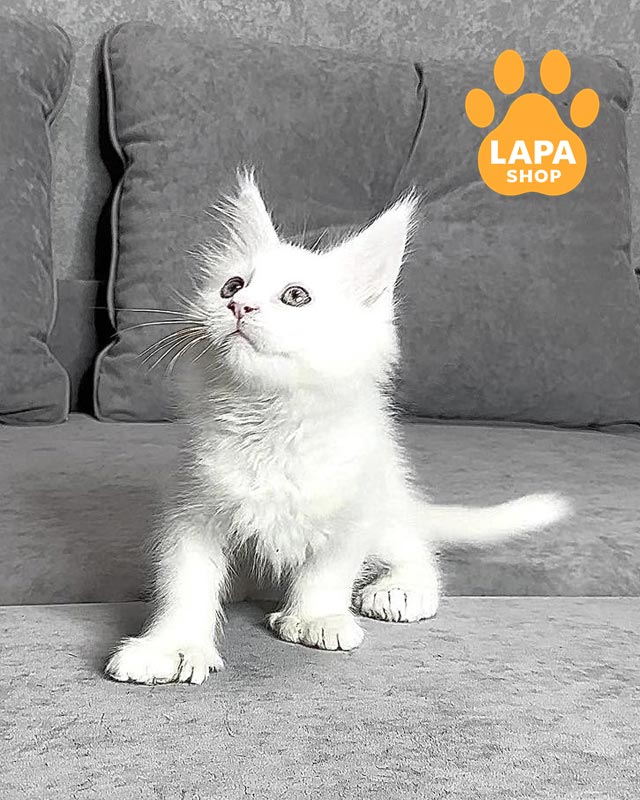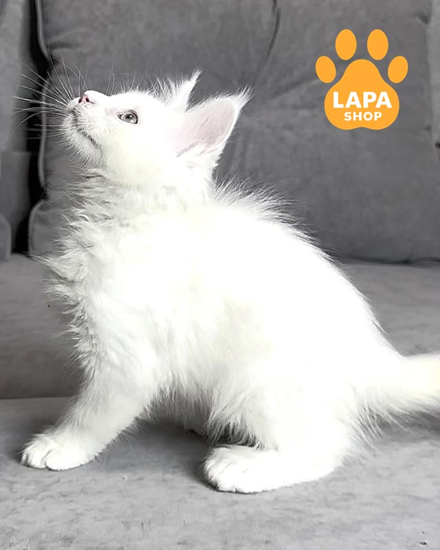 Величний мейн-кун полідакт Wizard — сніжно-білий красень із магічною харизмою та потужною статурою.