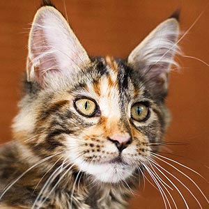 Кошеня породи мейн-кун в пошуку люблячих батьків.