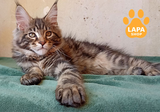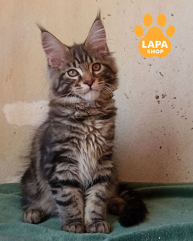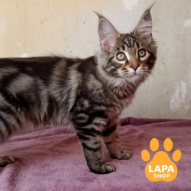 Красень мейн-кун Yaguar – зачаровує своїм ефектним чорним сріблястим мармуровим забарвленням, що підкреслює його силу й вишуканість.