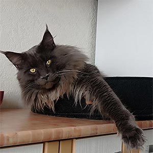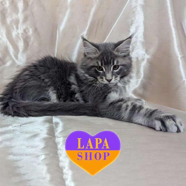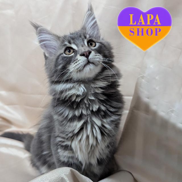 Амулет – неймовірний хлопчик мейн-кун із розкішним блакитним мармуровим забарвленням. Його благородний вигляд, великі лапки та проникливий погляд зачаровують з першої миті.