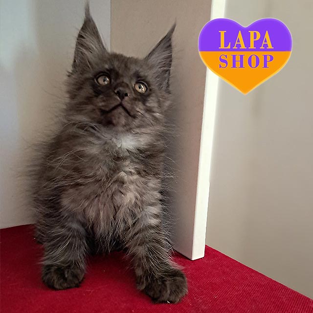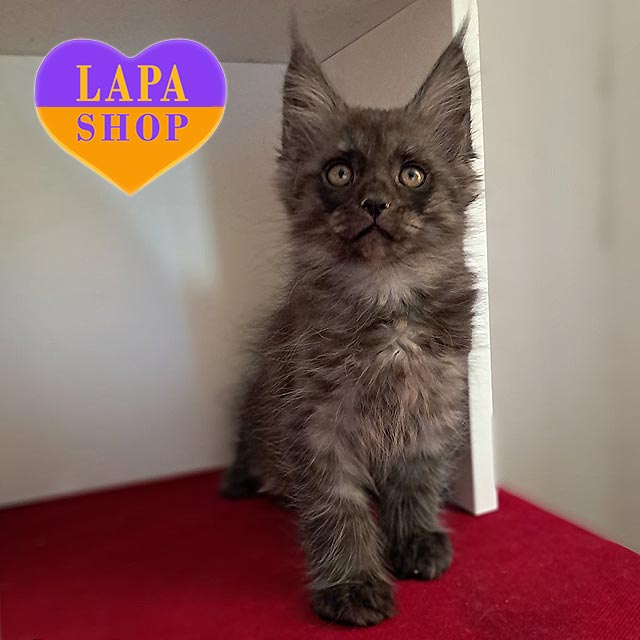 Кошеня породи мейн-кун в пошуку люблячих батьків.