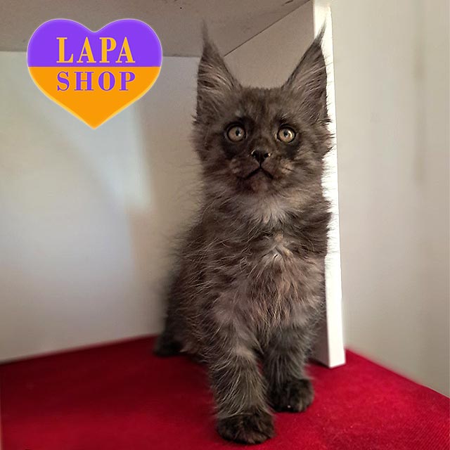 Онікс – вражаючий мейн-кун з чорним димним забарвленням (ns), яке створює ефект глибини та магічного сяйва, особливо на пухнастій шерсті.