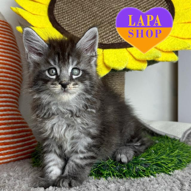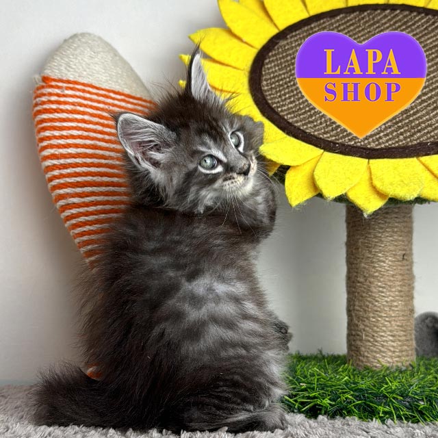 Teddy — прекрасний хлопчик породи мейн-кун із забарвленням чорне сріблясте плямисте (ns 24). Його міцна статура, розкішна пухнаста шерсть і виразні очі роблять його справжнім джентльменом.