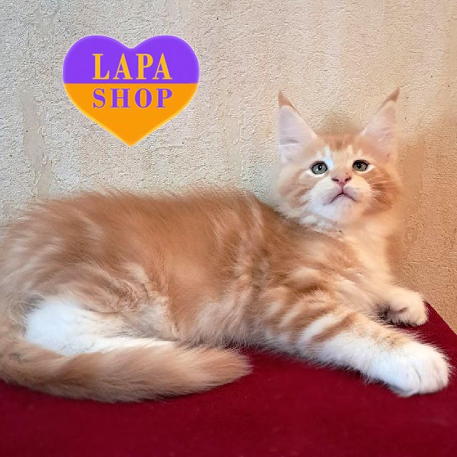 Улліс – справжній красунчик породи мейн-кунів із розкішним червоно-мармуровим забарвленням і білосніжними відмітинами.